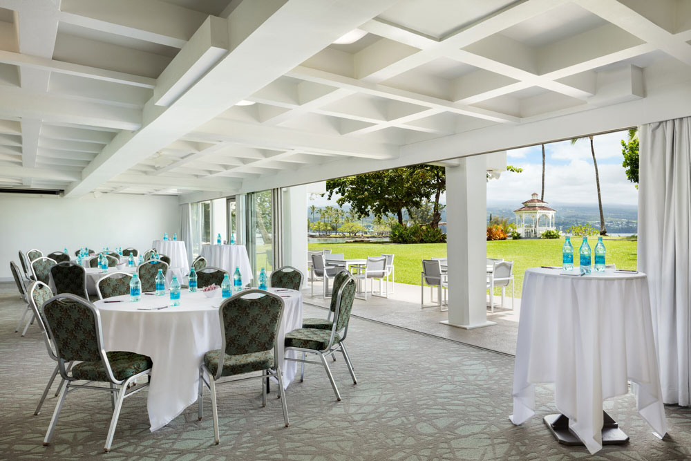 Start PlanningIdeal for classroom-style meetings, this room offers 1,740 square feet of space and Hilo Bay views. Those hosting corporate cocktail parties can make use of the venue’s built-in bar.